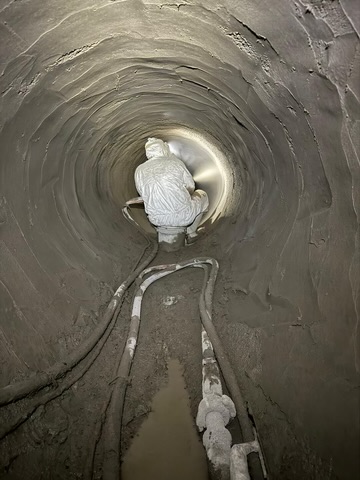 Once the initial remediation work was complete Puris could start the process of spraying the LOCTITE GeoSpray HCE onto the walls of the sewer. This section of the project ran smoothly and saw crews work 10-hour shifts to complete the task.