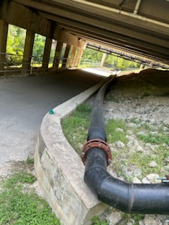 The sewer needed to be cleaned. A subcontractor was employed to complete this part of the project. Once finished, Puris had to remove a further one to two inches of debris that had been dislodged by the power washing of the sewer.